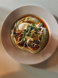 Roasted potatoes, chorizo, redpepper, baby spinach, chipotleheans served with poached eggs.