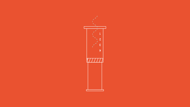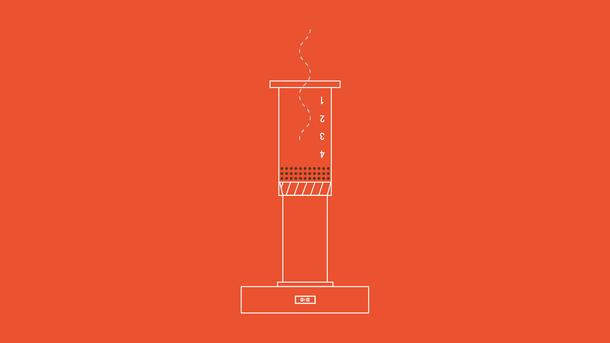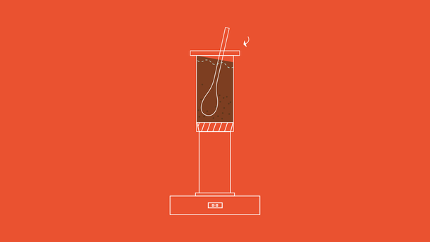 At 40 seconds remove Aeropress from scales and push out air by holding onto sides. Keep pushing until there are no more bubbles on the cap surface.