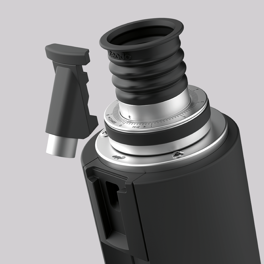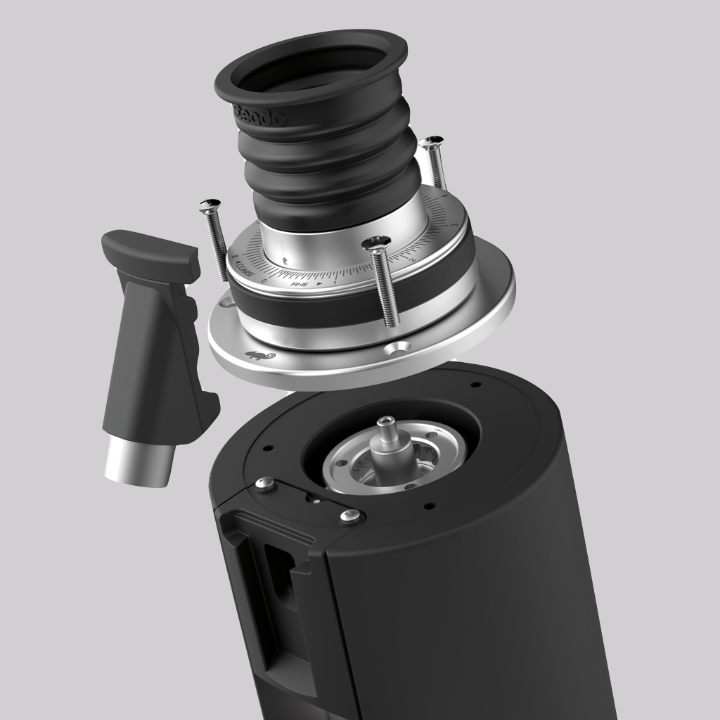The collar lets you dial in your grind settings quickly & accurately. There are only 3 screws you need to remove in order to pop the chute on & off, leaving you with for easy access to the grinding chamber for a quick clean and better tasting coffee!
