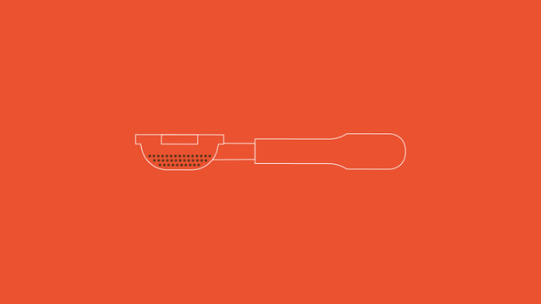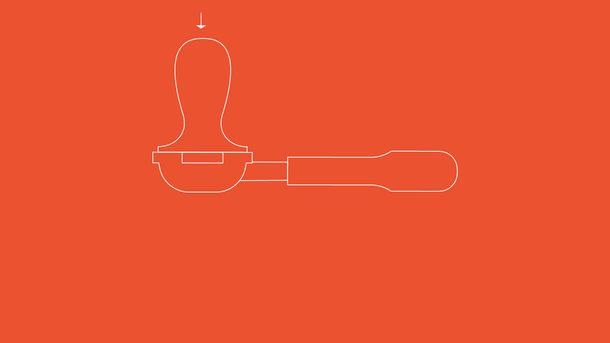Tamp evenly and firmly on a flat surface, wipe away any loose grinds from ears of portafilter.