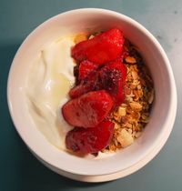 3fe Granola, yoghurt, blackberryand apple compote.