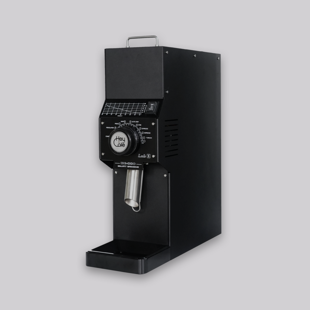 The HeyCafe grinder is the perfect entry level shop grinder. With 84mm Flat Burrs it allows you to grind retail coffee for customers and offer filter options in your cafe. The HC-880 LAB’s stepless grind has a wide range of grinding abilities. The indexed scale helps you find the perfect setting, making it easy to select the perfect grind. The tubular spout with the bag clip ensures that the HeyCafe will grind your beans straight into the bag for your customer. It has a compact footprint for efficient use of space.